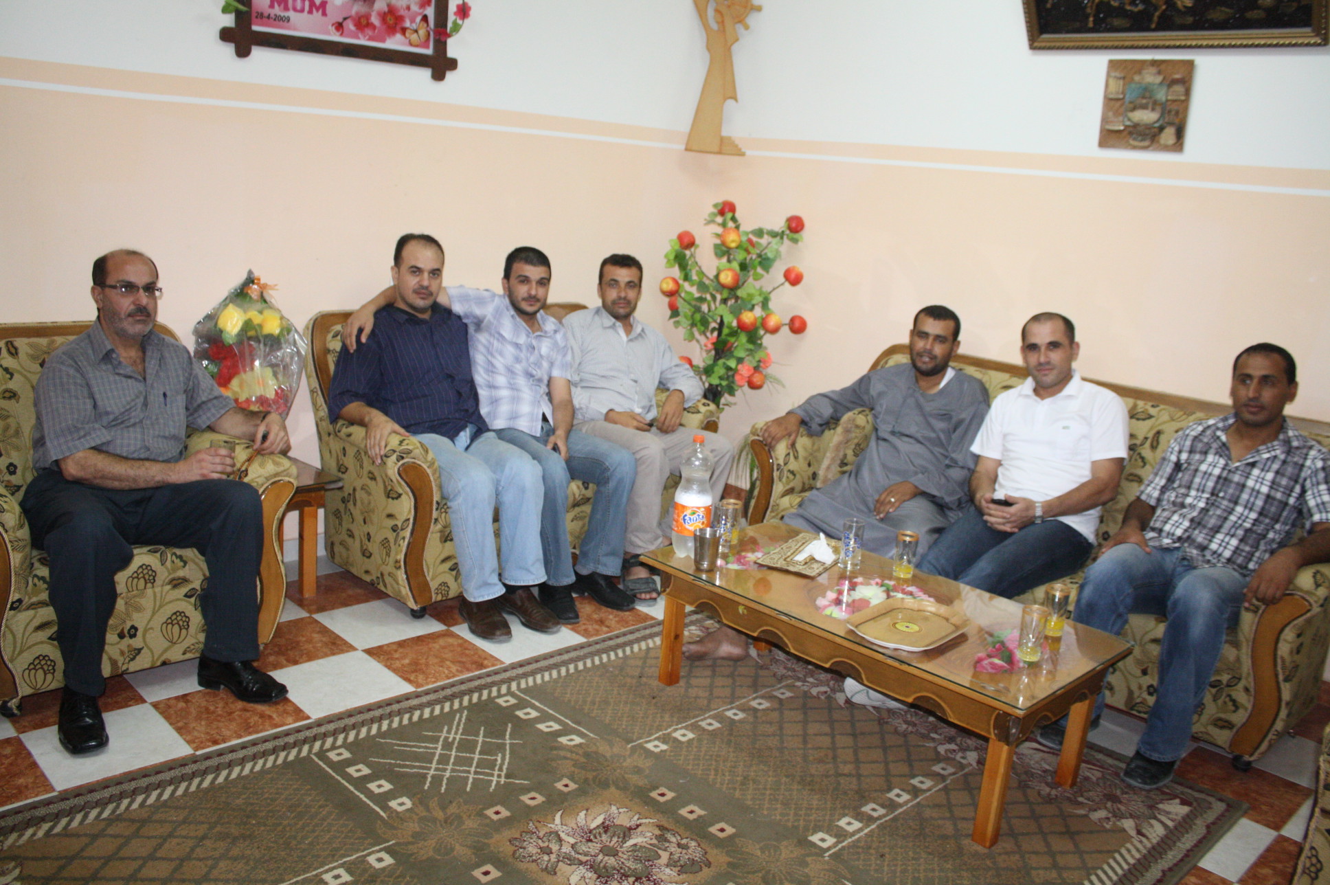 وفد من جمعية الامل لتأهيل المعاقين برفح في زيارة للزميل يحيى ابوشلوف لتهنئته بمناسبة شفائه بعد اجرا العملية الجراحية متمنين له دوام الصحة والعافية.