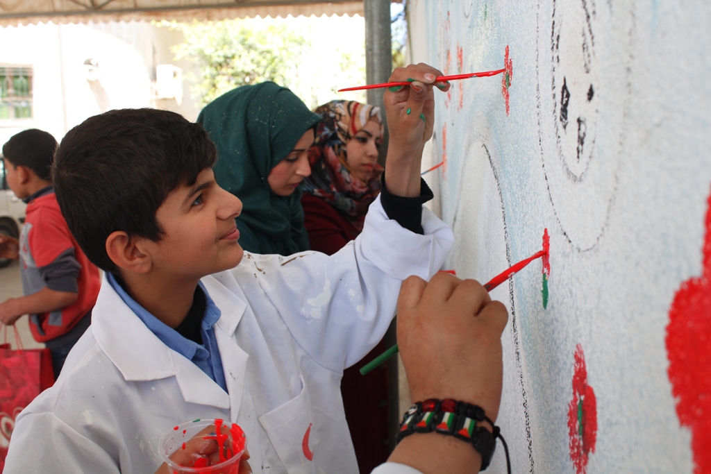 شارك طلاب مدرسة الأمل للصم بجمعية الأمل لتأهيل المعاقين رفح بلوحة جدارية تعبر عن احلامهم جاء ذلك ضمن مبادرة نفذتها جمعية أجيال المستقبل مع فريق من المتطوعين.