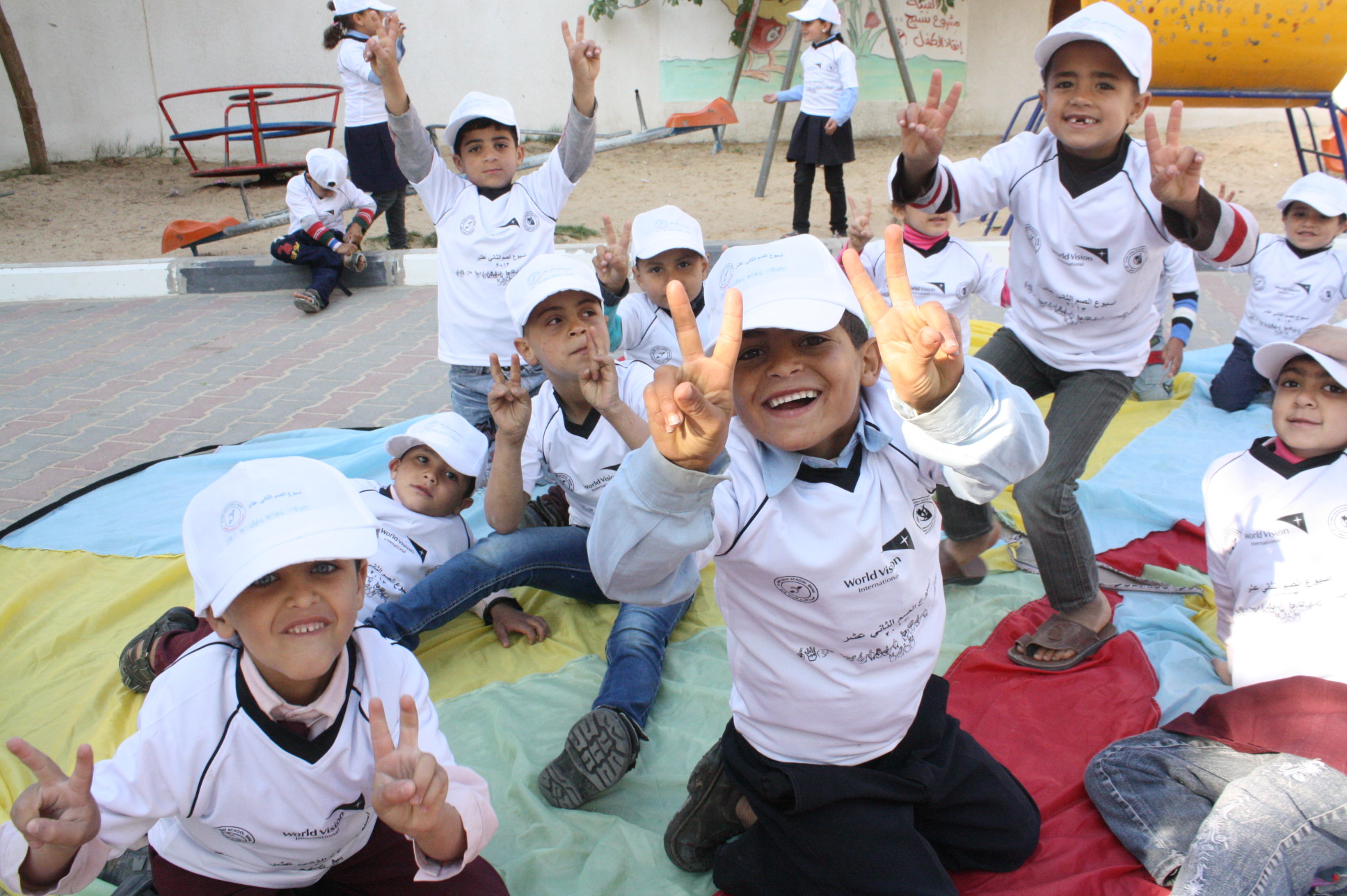 Children of Al-Amal kindergarten in Al-Amal Association for Rehabilitation - on a school day with Rafah Martyrs School