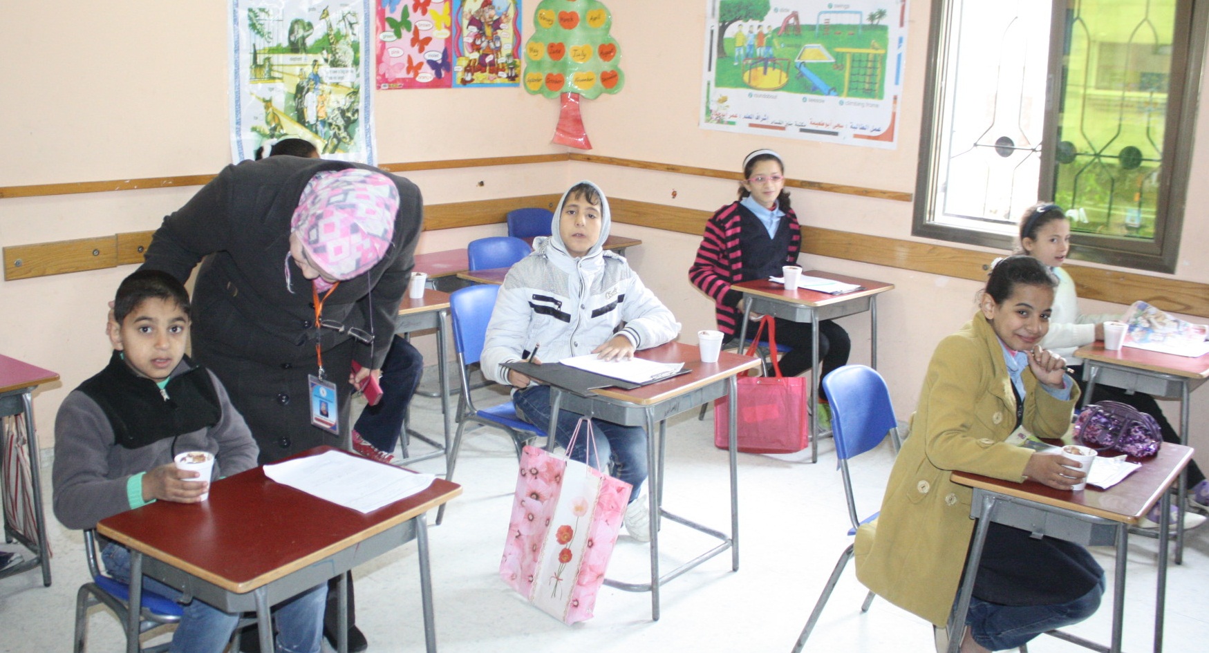 DetailsEl Amal Deaf School Students drinking Hot Chocolate while having their exams.